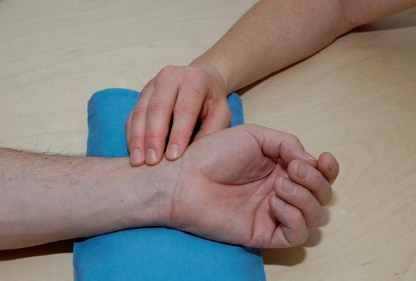 - Tasten – Puls fühlen und schmerzhafte Stellen ertasten.