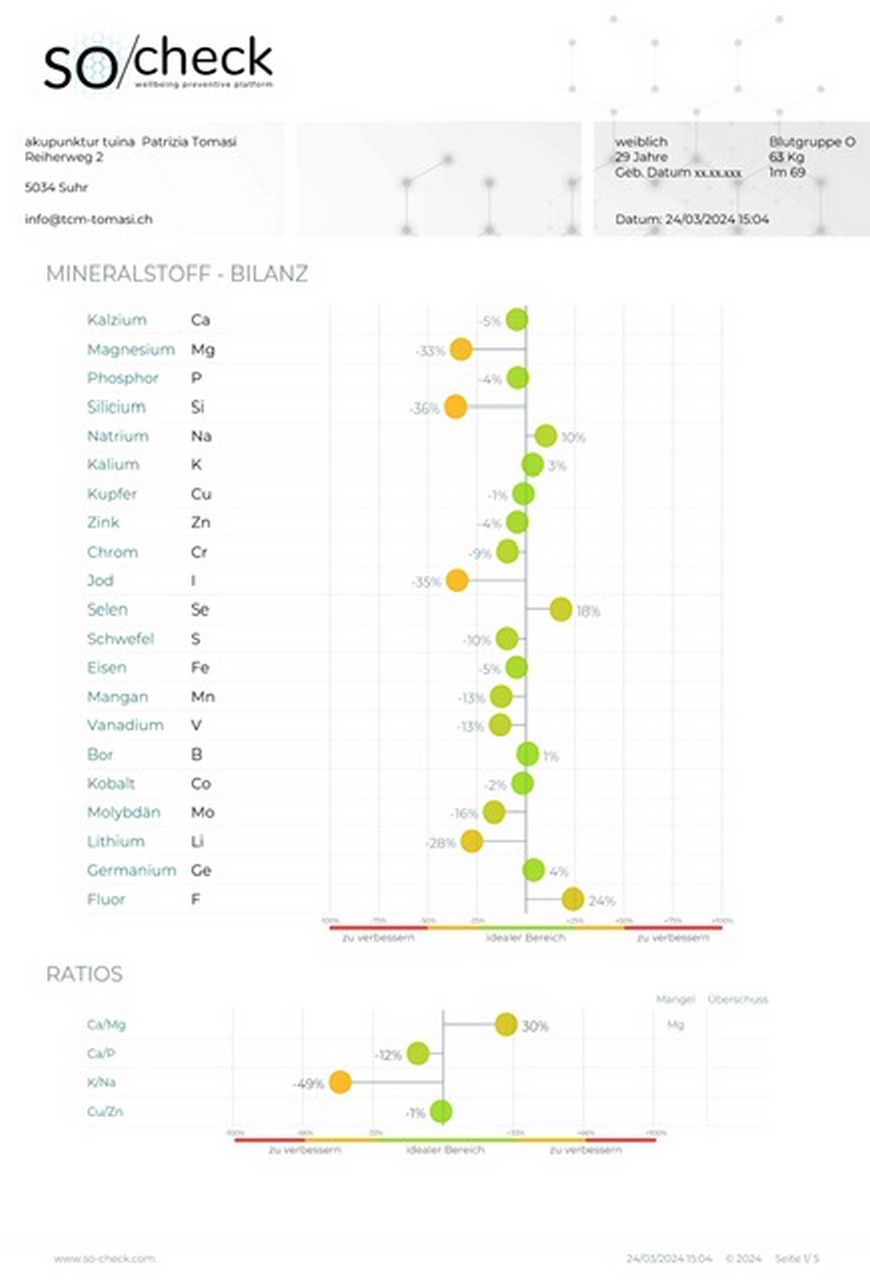 Mit dem SO/check erhalten Sie eine einfache, schmerzfreie und nicht-invasive Möglichkeit, wichtige Einblicke in Ihren Gesundheitszustand zu gewinnen. Die Analyse erfolgt in Echtzeit mithilfe moderner Spektral Photometrie über vier Punkte auf Ihrer Hand. Dabei werden Mineralstoffe, Spurenelemente und mögliche toxische Metalle direkt auf zellebene gemessen.